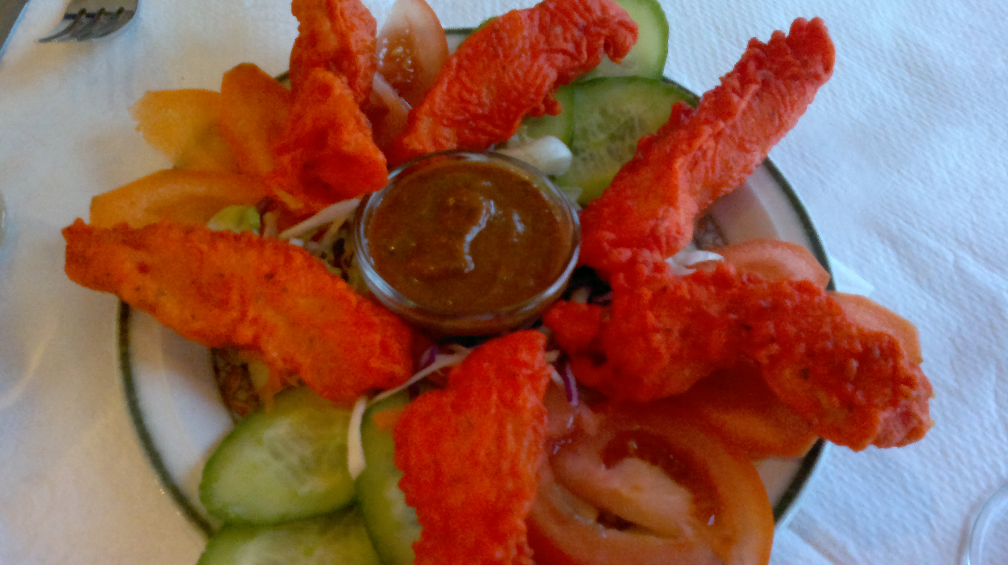 But we decided to taste for starter Chicken Pakauda (deep-fried chicken with vegetables and sauce). Very tasty and enough for two to share. First picture up on the left.
