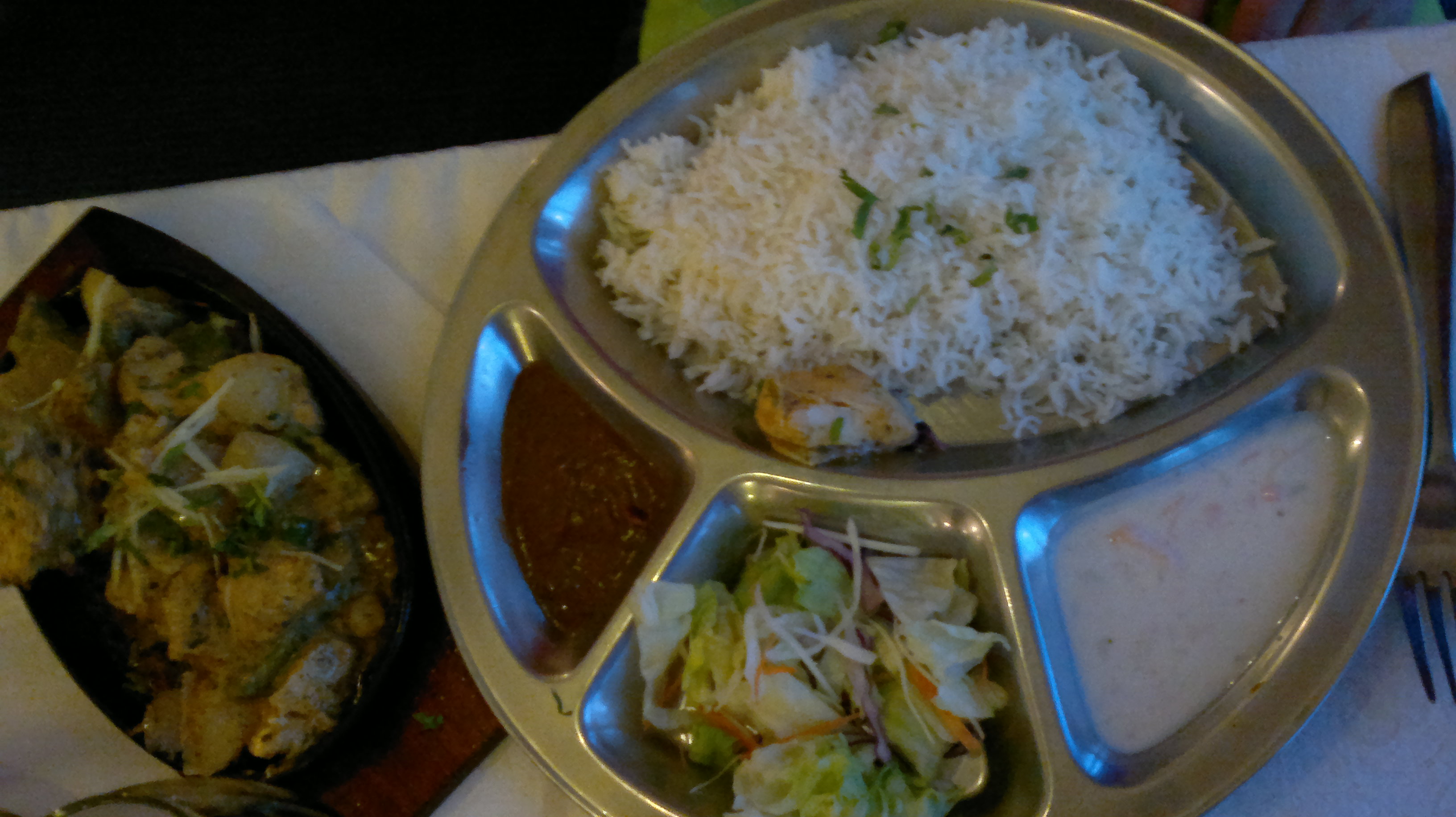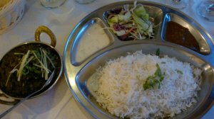 For main courses we ordered  Garlic Tikka (Tandoori Chicken marinated in herb and yoghurt with garlic, onion, ginger and capsicum sauce )  and Chicken Saag (Stewed Chicken with ginger, garlic and mild spinach sauce). All portions include basmati rice, naan bread baked in Tandoori oven, raitha and vegetables. Garlic Tikka was quite generous; you would not have to eat starter in order to be full of eating. Chicken Saag is mild as it says in a la carte list which is sometimes welcomed in so spicy kitchen.