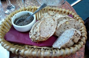 Started dinner with large Antipasto (8 pieces) including Mozzarella, gorgonzola, cold smoked salmon, prosciutto, marinated champignon mushrooms, olives, marinated artichoke and melon. Mozzarella was Buffala which was bonus, mushrooms tasted best, artichokes shoud have been grilled but now tasted too much for vinegar. In overall appearance of antipasto plate looked too much tinned food. Also ordered Bread Basket fresh bread and tapenade spread, maybe the most expensive bread in the restaurants but good.