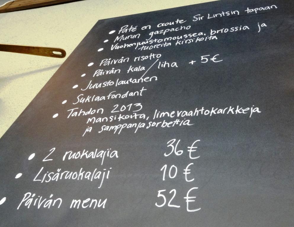 Restaurant Muru is a small bistro style restaurant located at Fredrikinkatu 41, Helsinki. Muru’s idea is to offer fresh food from the ingredients available daily without stiffness. Therefore menu is written only on blackboard on the wall and you just let the waiters and waitresses guide you.