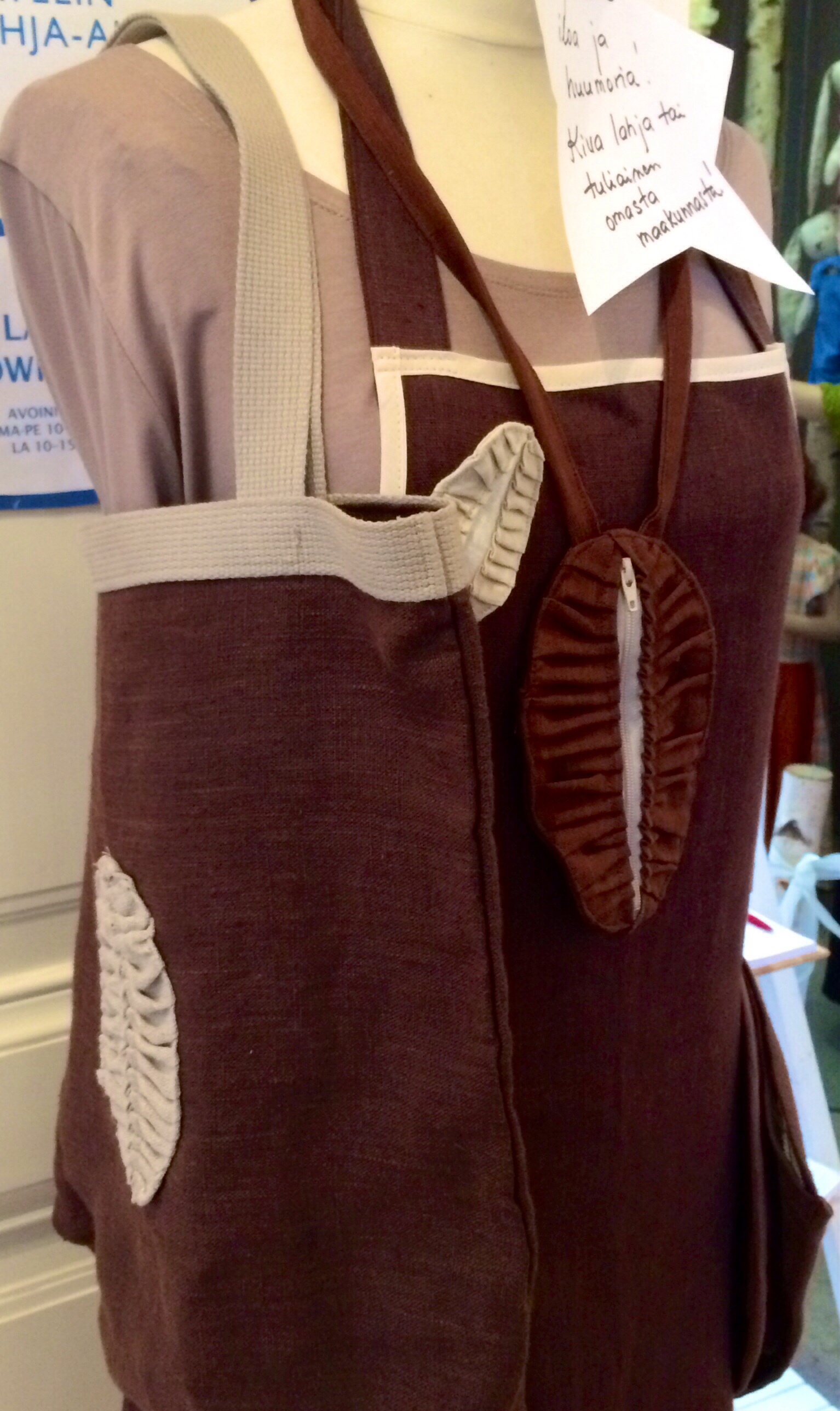 To use Karjalan piirakka as a model for a purse or small bag is interesting idea. Photos were taken in Joensuu, in Taitokortteli buildings.