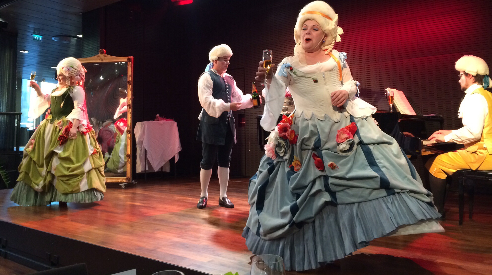 There are couple of theatre restaurants serving dinner during show but frivolous opera is refreshing way to replace theatrical presentation.