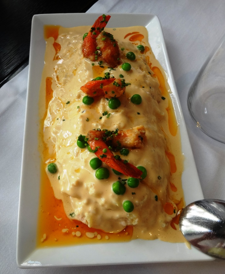 Four main courses had Sea bass with small dried tomatoes served with lemon and thyme sauce and Beef tenderloin, potato and vegetable cake, mushrooms and foie gras sauce.