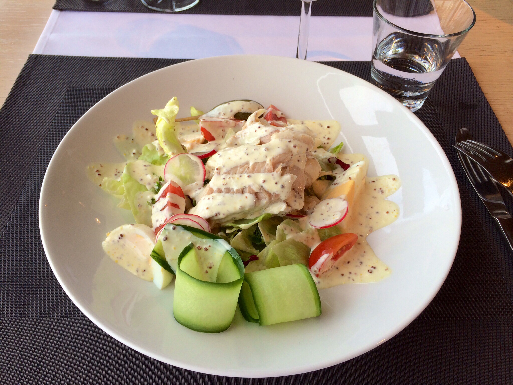 This time for starters we had Warm smoked white fish, salad and mustard-dressing and Green asparagus, Parma ham and hollandaise sauce.