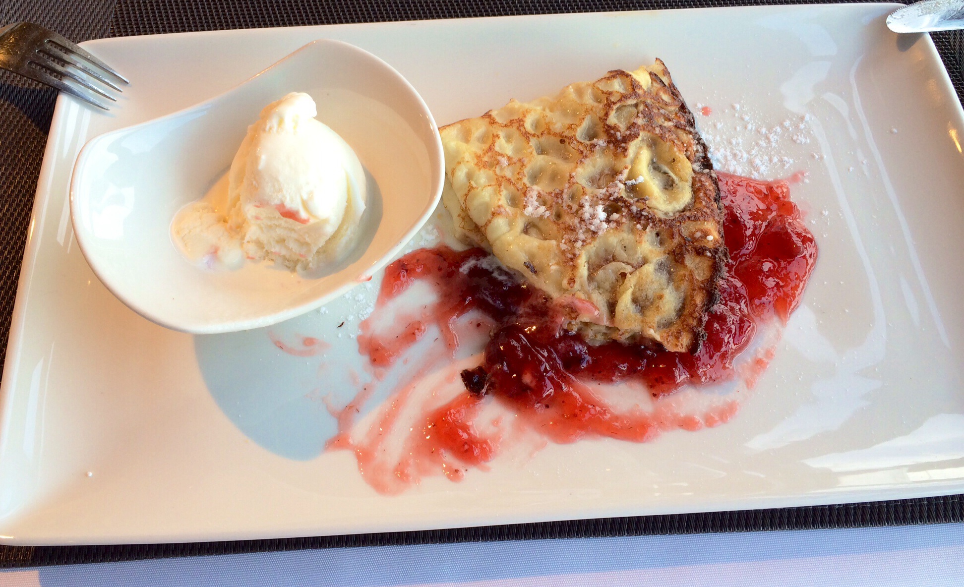 Most important, of course, are desserts. And of course Crepe, strawberry jam and vanilla ice-cream and this time also Ice-cream and berries.