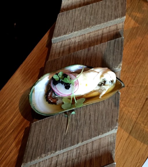 green shell mussel, yuzu-honey dressing, seaweed caviar