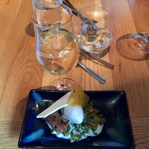 pumpkin & almond cake, licorice ice-cream, pistachio and vanilla creme anglaise, licorice cream, licorice marengue
