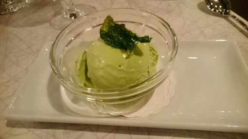 The vegan dessert was a creamy, structure like ice-cream. Basil and coconat are not a common combination, but it totally works!
