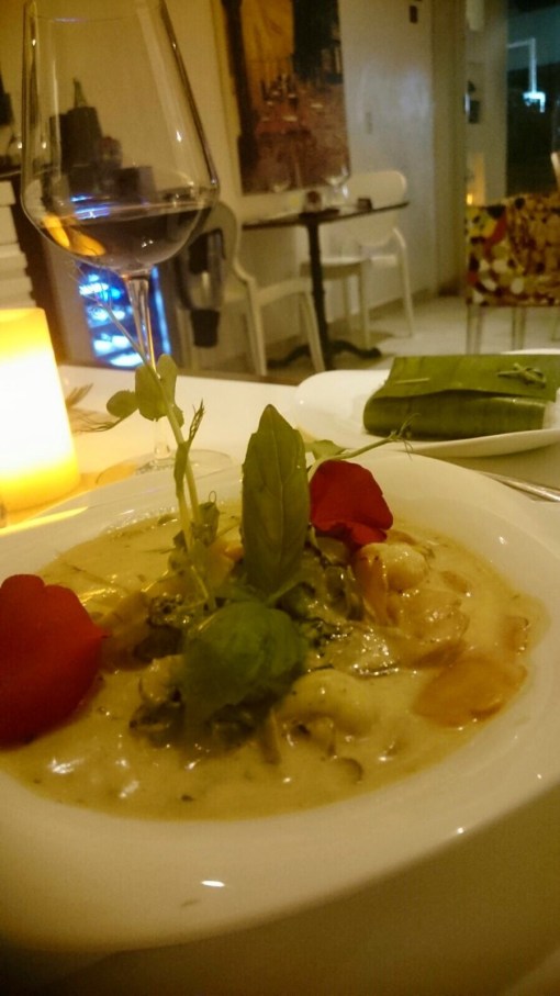 For main course had Octopus with potatoes and green salad and Red Curry.