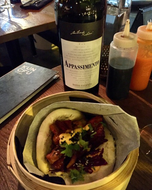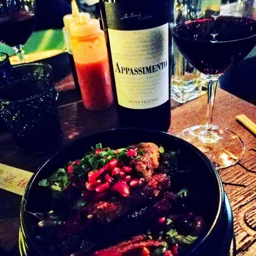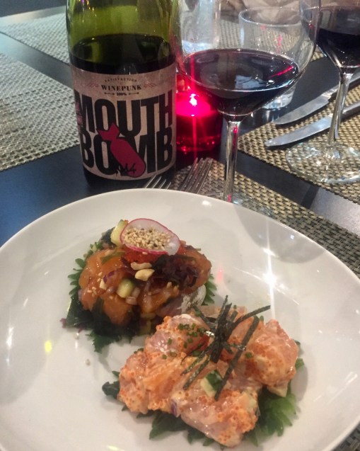 Ordered this time full-bodied Mouth Bomb, which is produced by Casa Vinicola Winepunk in Toscana, Italy. The variety of grapes, Merlot, Syrah, Cabernet Sauvignon, Ciliegiolo, Grenache and Sangiovese are the reason for name. Excellent wine for the dishes we ate!