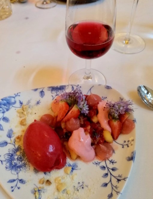 Desset wine from Bigaro, Piemonte, Italy is produced with two different grapes, one white (Muscat) and a black (Brachetto). Amount of alcohol is only 5%, which makes this perfect summer wine.