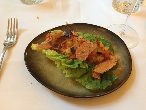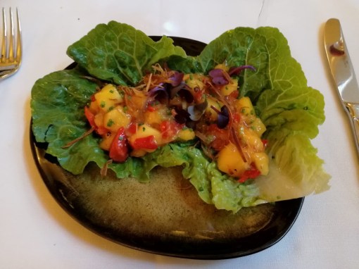 Second dish on the menu was SPICY MANGO Baby gem, fried shallot, pimento.