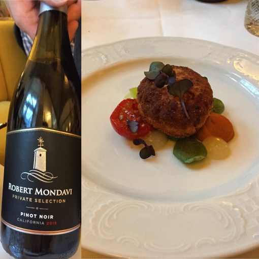 Wine served for both starters was Pinot Noir from Robert Mondavi. Fruity and almost full-bodied wine paired perfectly with starters.