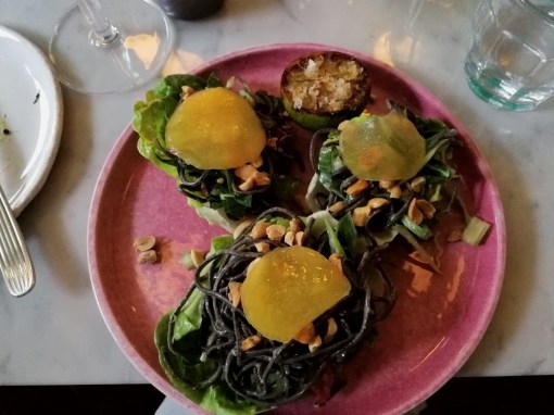 Next we were served Charred kale, pickled grapes, burnt corn and toasted sesame. Crispy kale was perfect and paired perfectly with other ingredients.