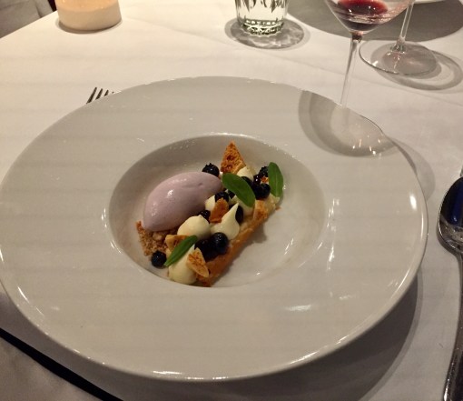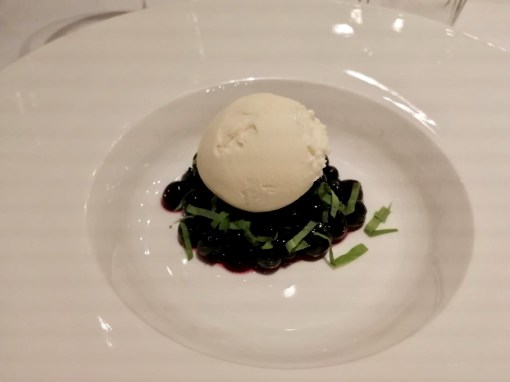 Oat milk ice-cream with blueberries and blueberry ice-cream with crispy cakeΒ melted in the mouths. Perfect finish for excellent dinner.