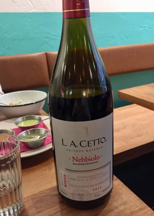 Had to order Mexican wine from Valle de Guadalupe although it was the most expensive on the wine list. L.A. Cetto Nebbiolo 2013 color is intensively dark red, it is full-bodied and taste is rich. Only the price might slow down the sales, otherwise it could be the best-seller in the restaurant.