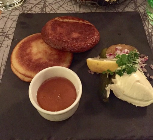 Wine list, when it comes to red’s, is quite short and prices are quite expensive for casual bistro. Tried one of the few full-bodied, Saint Cosme Côtes-du-Rhône 2016 from France. This vegan wine produced from Syrah grapes paired well with all dishes although the tastes of dishes were quite modest. However, the price for this kind of food is too expensive.