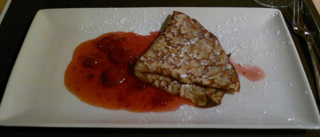 For dessert, of course, Crepe with Old fashioned ice-cream and strawberry jam. It would be convenient to have at least one choice of lactose-free or low-lactose ice-cream because suggested sorbet does not pair with delicious crepe. We also paid normal price for the portion although decided to order it without ice-cream. Crepe is propably best in Helsinki as mentioned in earlier post, but would also value if both of us could really enjoy it with all side dishes.
