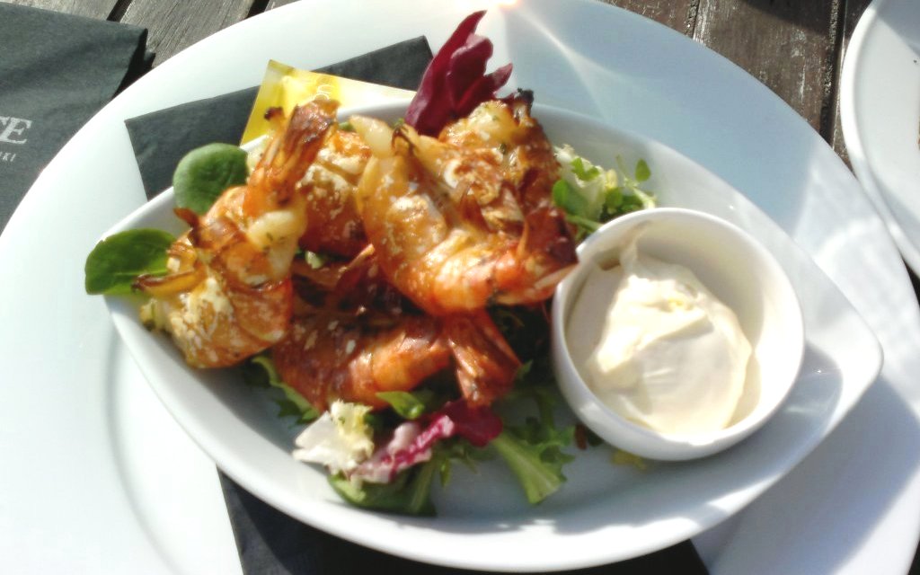 For starters we ordered Mozzarella Sticks (quite ok), Sesame Chicken Sticks Battered sesame seed chicken sticks with aioli (word chicken should not be part of this portion as it includes about 2% chicken), Holy Halloumi Halloumi cheese with apple and cucumber salad and harissa oil (ok) and Teriyaki Shrimps Sesame seed king prawns with spinach and teriyaki sauce (also OK)