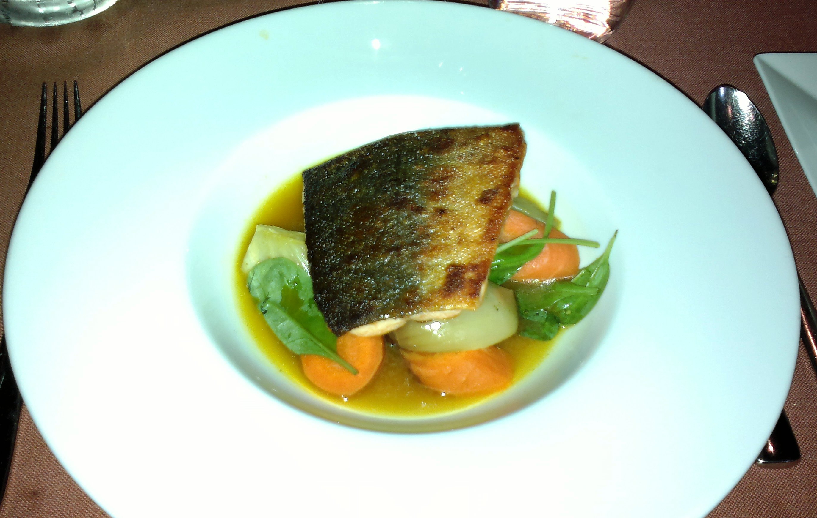 For starters enjoyed Lemon and herb flavoured salmon pastrami, poached fennel and Buffalo mozzarella, caramelized tomato, mangold beet and barrel aged balsamico. Salmon pastrami was delicious, coud have eaten double portion. Some problems with poached fennel as asked it without lactose, got first portion with zucchini. After pointing out, got fresh fennel but not poached, unfortunately. Buffalo mozzarella is always delicious but tomatoes were a little bit difficult to eat. Mangold was chevy, but interesting experience anyway.