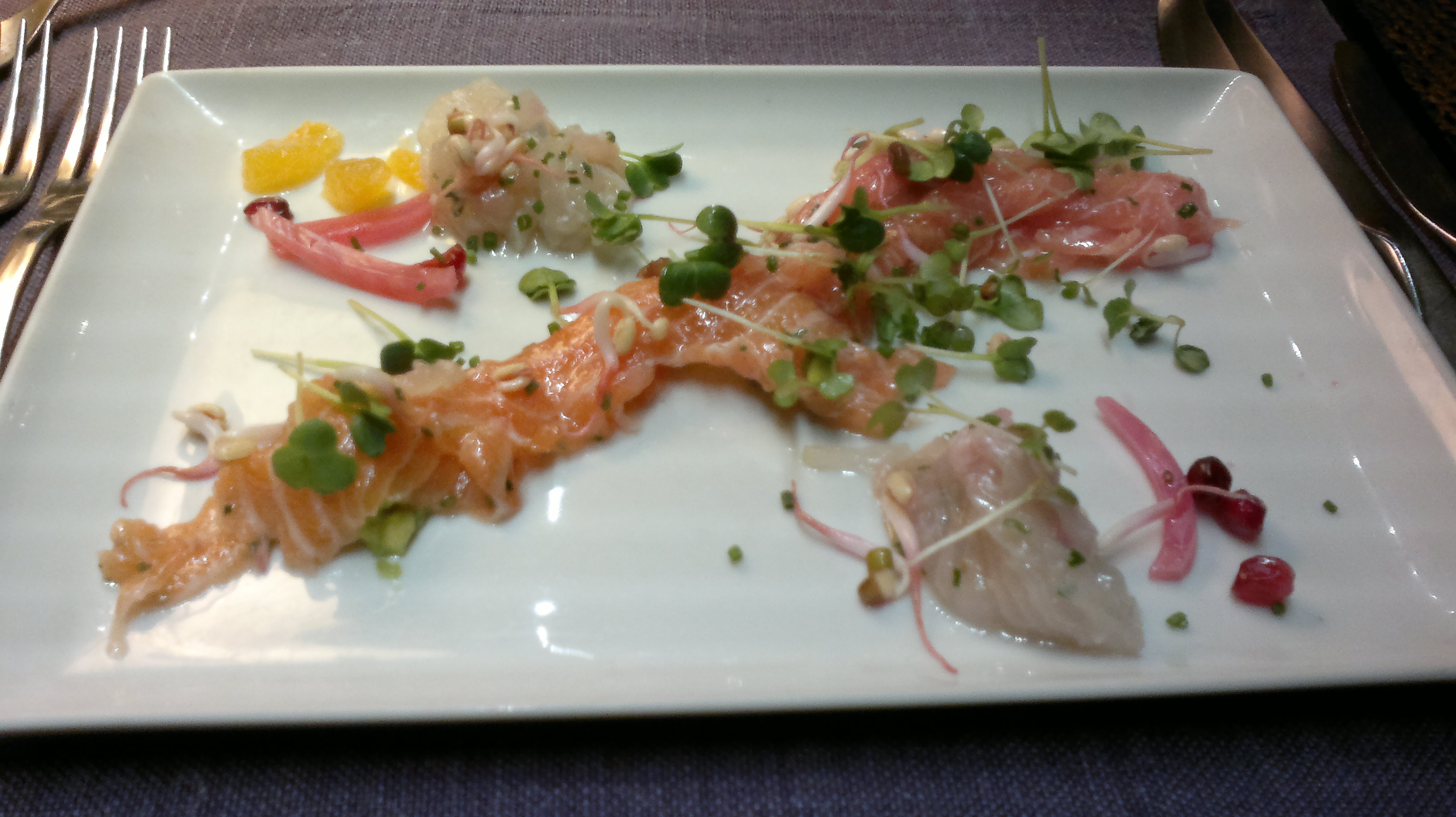 Dinner started with Greetings from the kitchen. Simple snack but not bad at all.