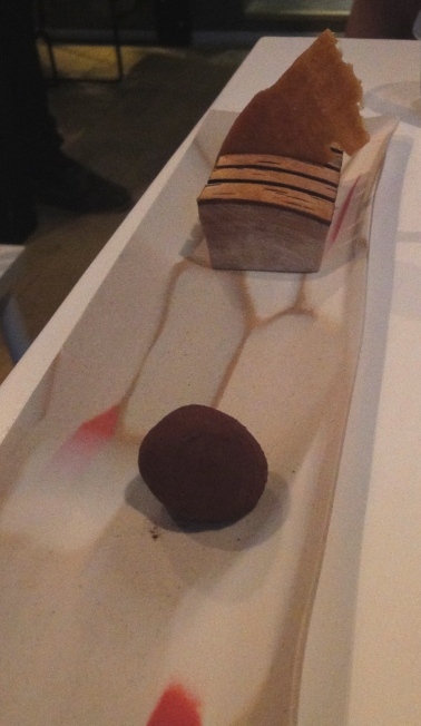 Dinner ended up with tea and espresso. But as you are able to taste Ålvados, which is calvados from Åland, you have to try it. And with dessert drinks still some sweets served on huge Lego block. Great way to end the dinner.