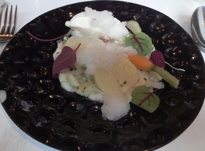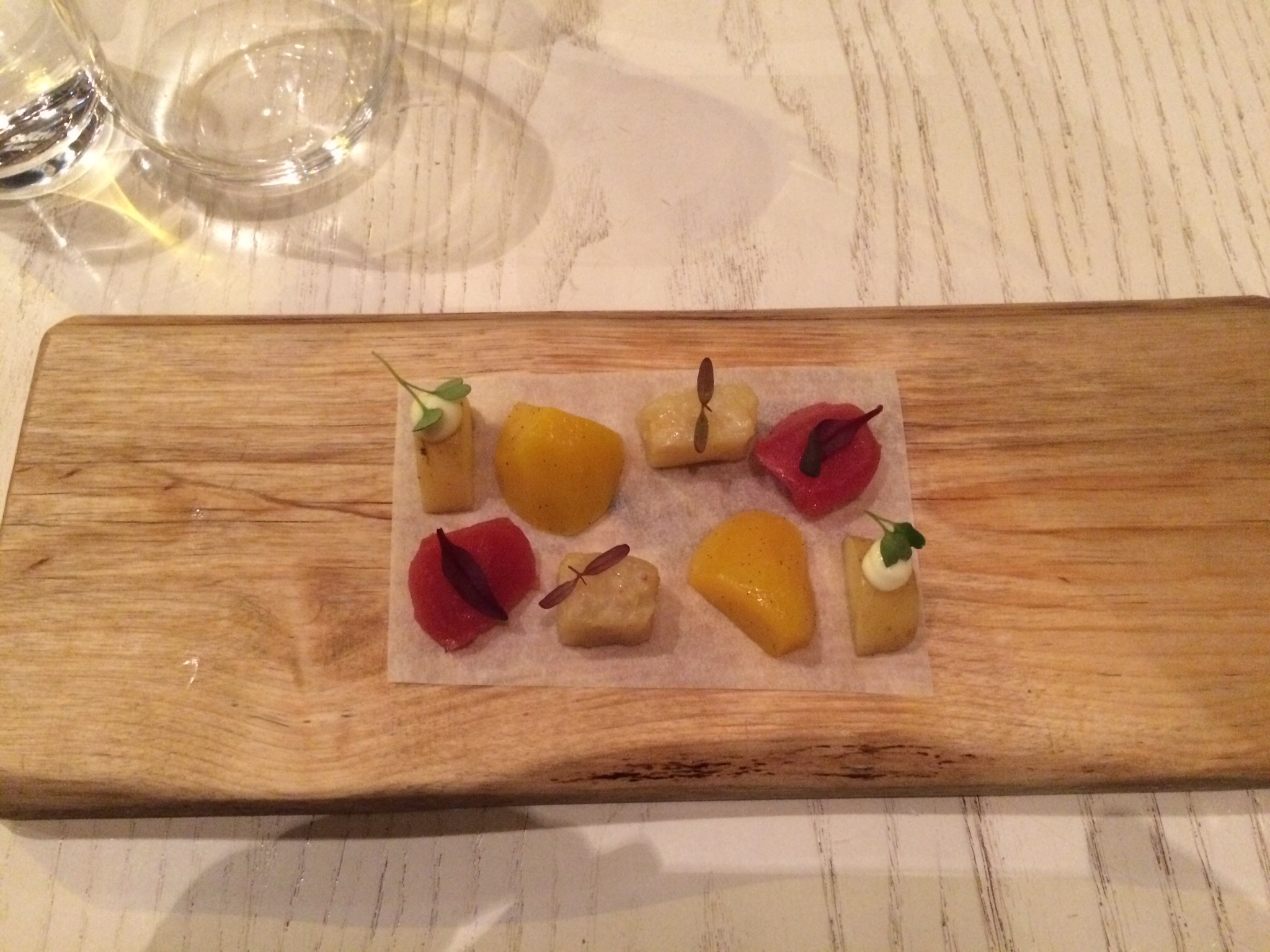 Dinner started again with snacks; several of them, which really differentiate Spis from many “gourmet” bistros in Helsinki. We had 4 dish menu but got about 10 plates to be enjoyed during the dinner.