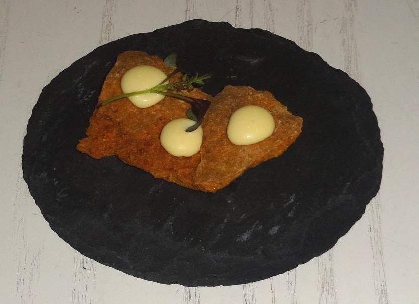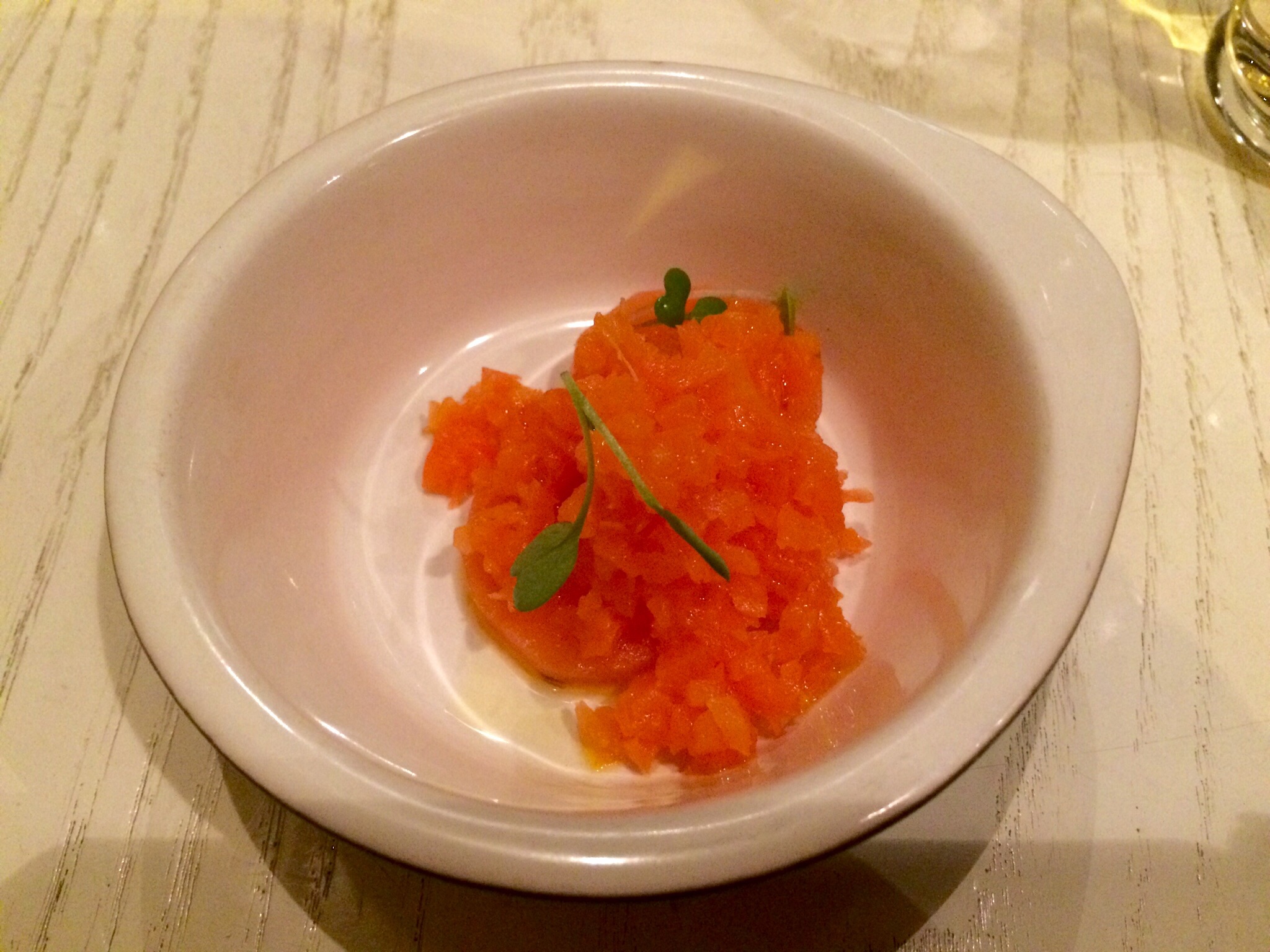 The came greetings from the kitchen, which was warm potato soup. Kitchen also prepared special edition of the greeting because of cream in the soup. Carrots in different forms were warmly welcomed surprise.